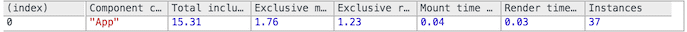 Perf.printExclusive(measurements)Thời gian “Exclusive” không bao gồm thời gian thực hiện để gắn kết các thành phần: xử lý đạo cụ,